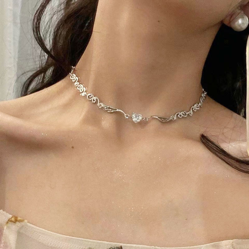 Trend Irregular spiral Silver Color Metal Choker Chain Necklaces for Women Love Heart Zircon Angel Necklace Jewelry Gift x730 – Sumsfashion